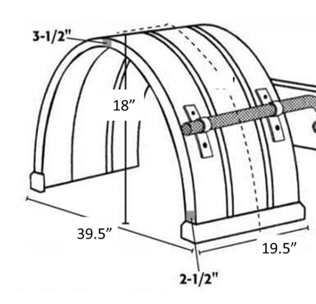 One (1) Tough black poly fender (mounting brackets sold seperately). This does one wheel (2 per axle required). Fits trucks with 18" to 19.5" dual rear wheels. SEE DISCLAIMER BELOW. IMPORTANT. PLEASE READ: Please check measurements to make sure this fender will fit your truck prior to purchase. See drawing. They fit most but may not fit all trucks with 18 to 19.5" tires. Pay particular attention to fender width. If you purchase the fenders and they do not fit you can return them for a refund, but we do not pay return shipping. Fenders are 19.5 inches wide. They measure 39.5 inches end to end.